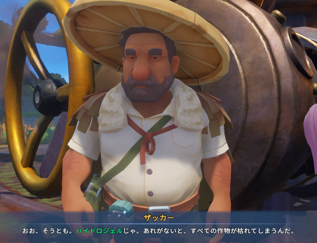 さっきの戦闘で、モイスチャーファームの気候を管理するハイドロジェルという機械が壊れてしまいました。